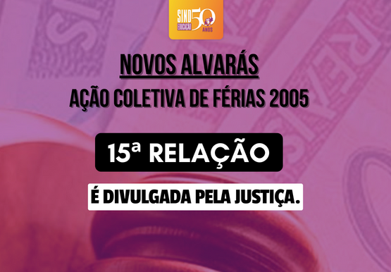 O Sindeducação informa aos professores e professoras contemplados (as) na Ação Coletiva de Férias 2005 que a Justiça divulgou a 15ª relação de alvarás com os nomes dos servidores que já podem se dirigir ao Fórum para o recebimento 23-11-2022